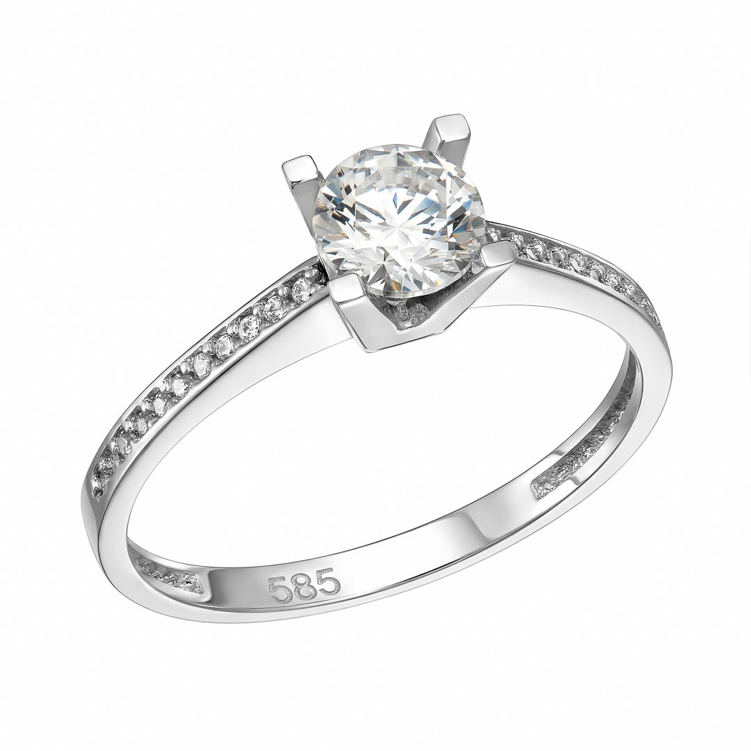 14k Δαχτυλίδι μονόπετρο λευκό