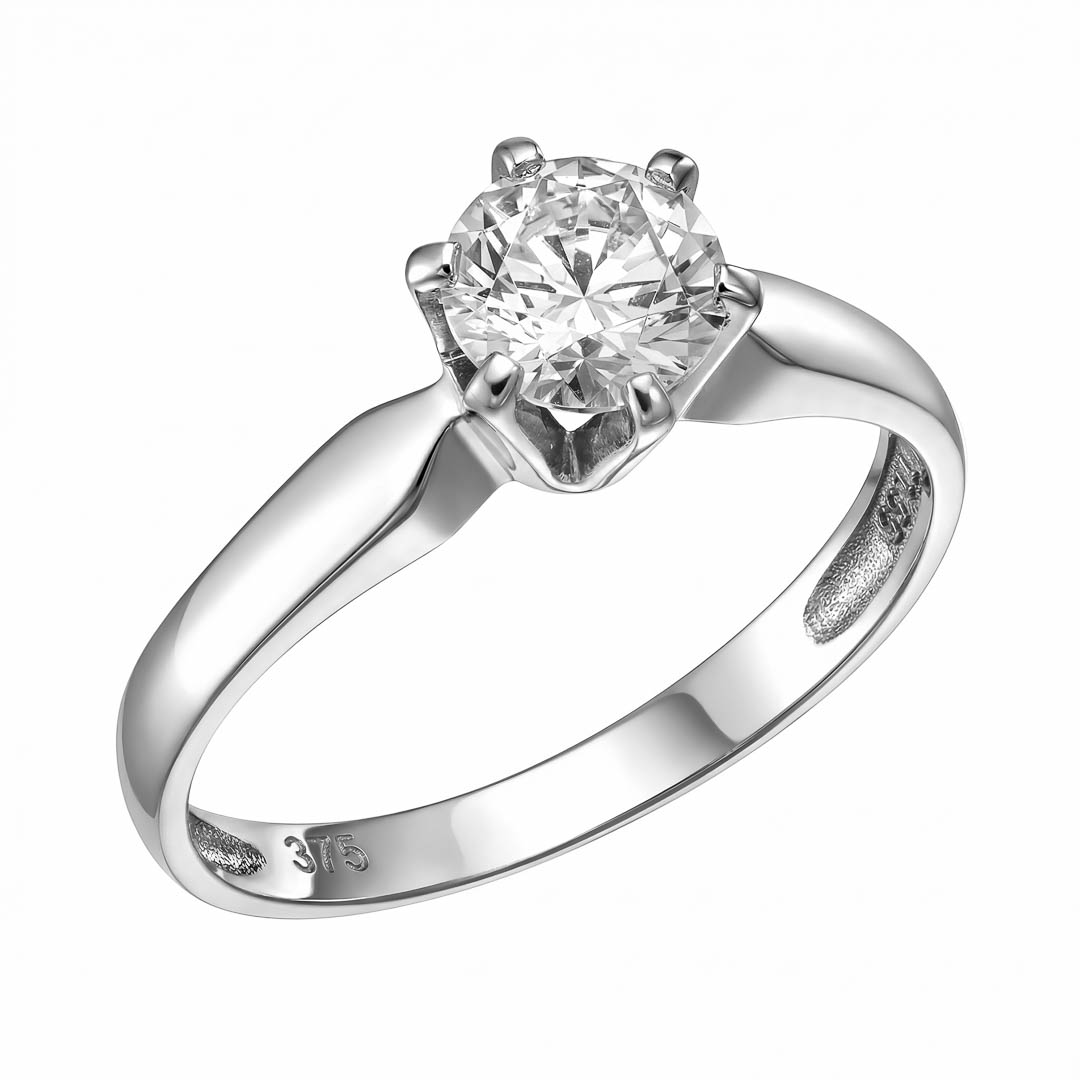 9k Δαχτυλίδι μονόπετρο λευκό