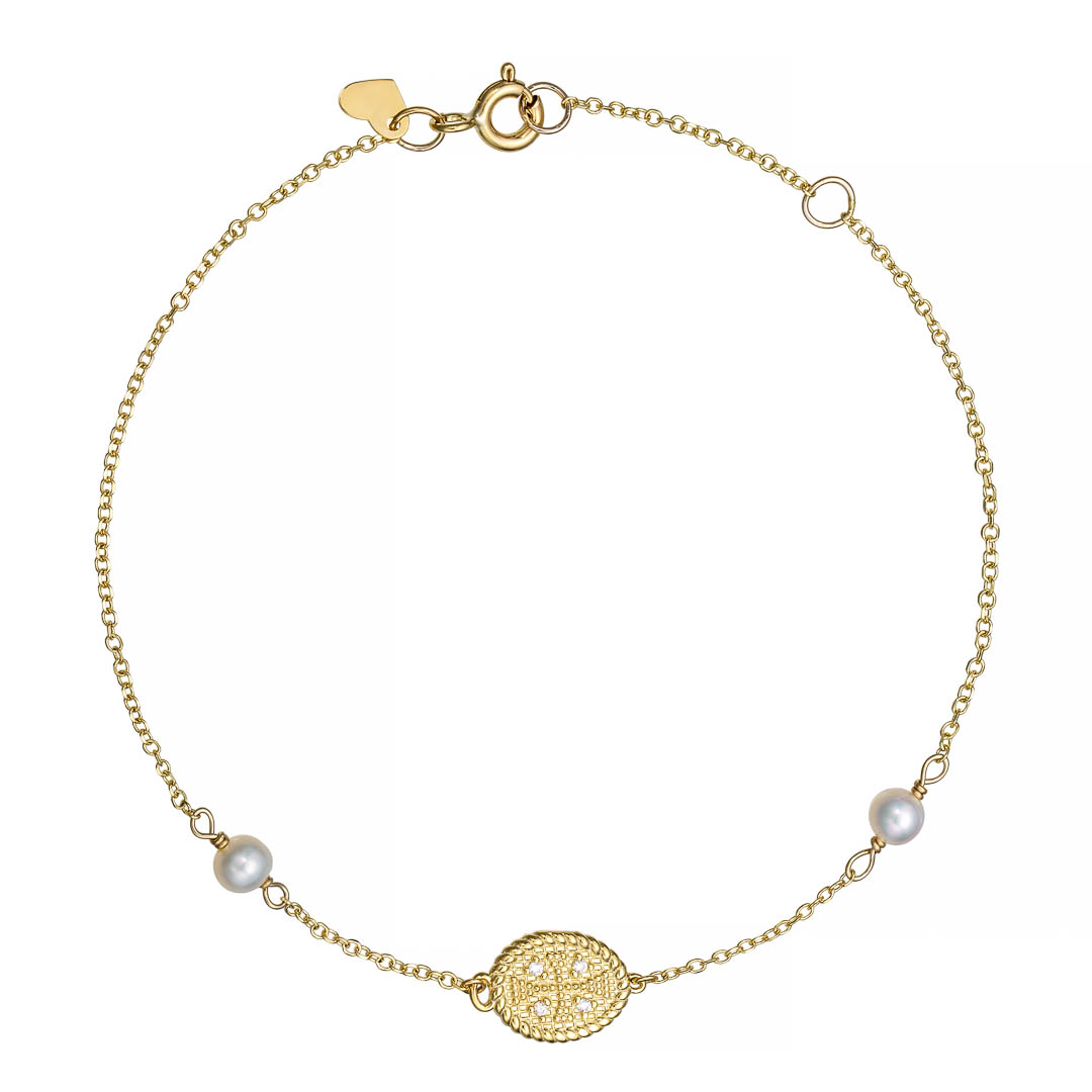 Εντυπωσιακό βραχιολάκι κωνσταντινάτο διπλής όψης με δύο μαργαριταράκια από χρυσό 9 καρατίων. Ιδανικό για κοπέλα !!!