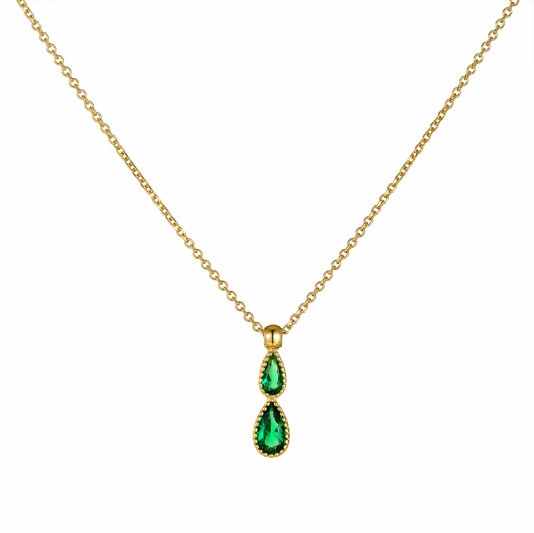 9κ κολιέ ροζέτα με διπλό πράσινο δάκρυ σε όμορφο σχηματισμό από χρυσό 9 καρατίων. Εντυπωσιακό κόσμημα minimal για κάθε γυναίκα